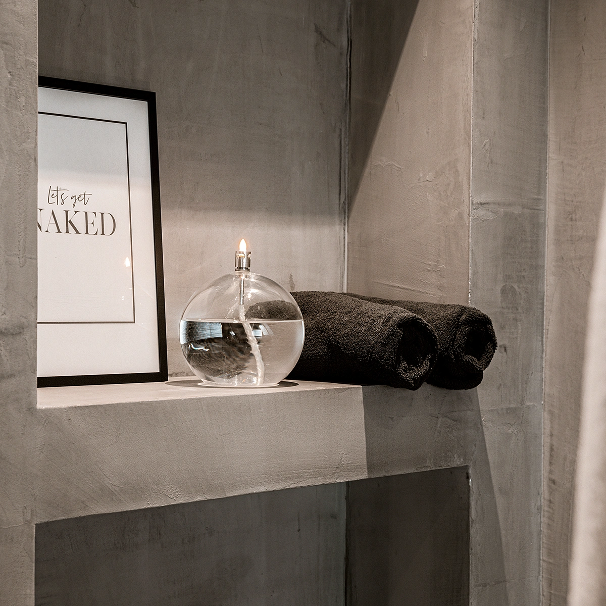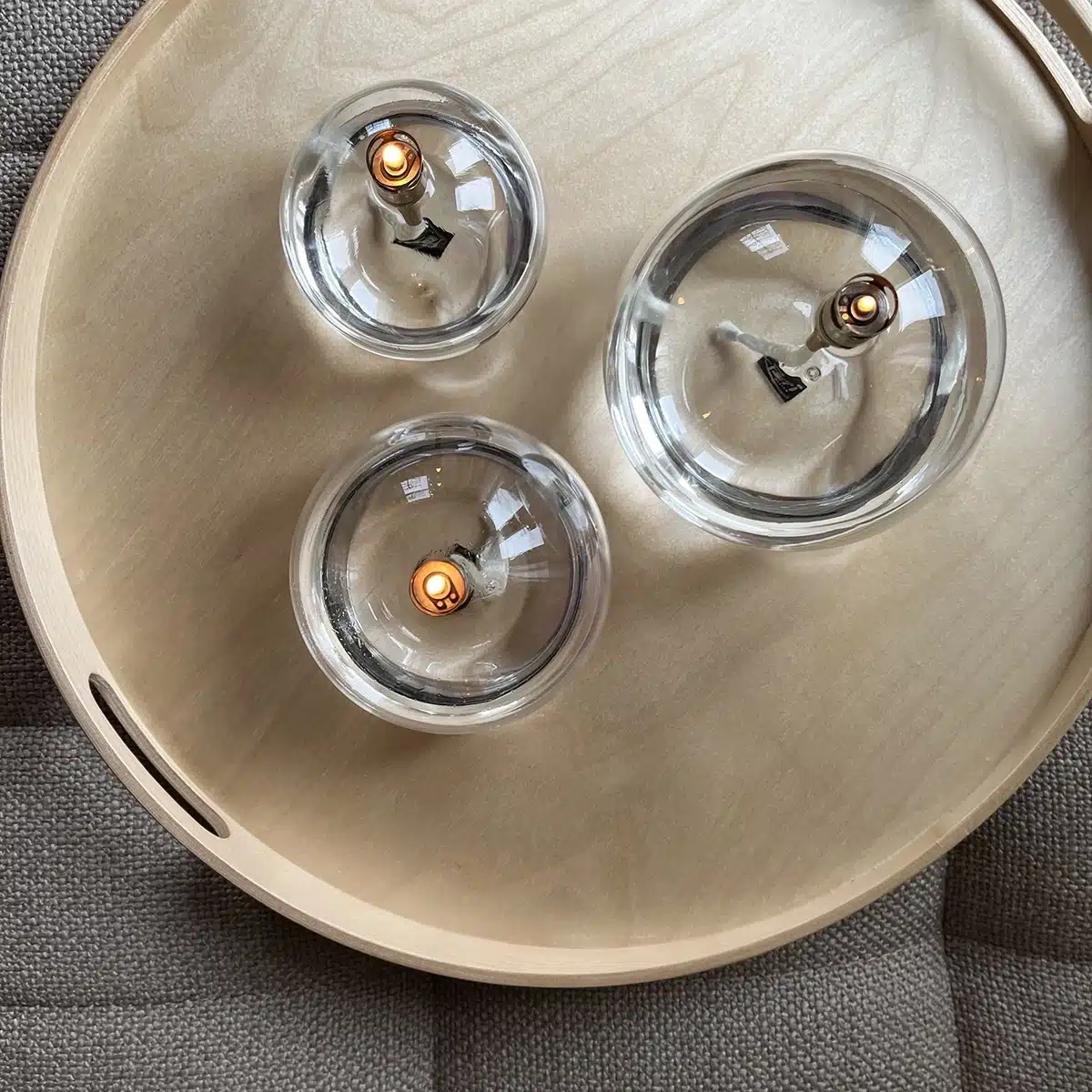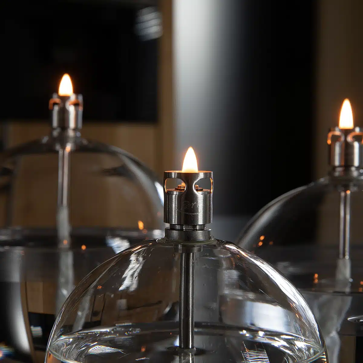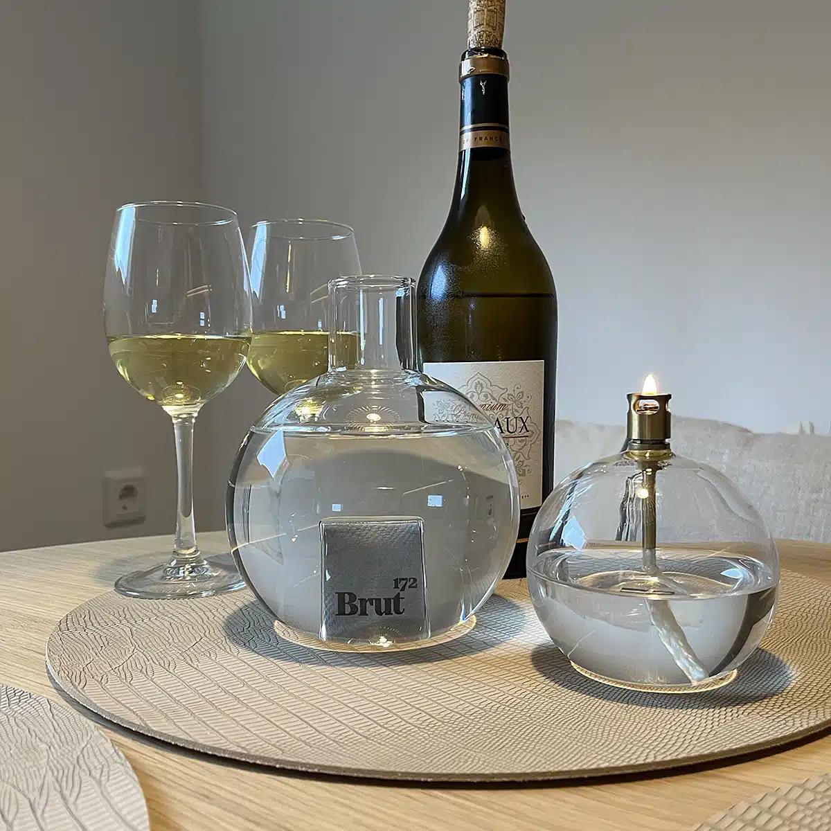 Lampe à huile minimaliste sphère. Elle est idéale pour créer une ambiance cosy et chaleureuse à votre intérieur. Cette lampe à huile verre et laiton est très simple d’utilisation. Il suffit de dévisser la partie supérieure, de placer l’entonnoir et verser la paraffine liquide. La mèche en fibre de verre vous suivra quelques années sans problème. Elle est quasiment inusable.