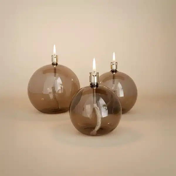 Lampe à huile minimaliste sphère. Elle est idéale pour créer une ambiance cosy et chaleureuse à votre intérieur. Cette lampe à huile verre et laiton est très simple d’utilisation. Il suffit de dévisser la partie supérieure, de placer l’entonnoir et verser la paraffine liquide. La mèche en fibre de verre vous suivra quelques années sans problème. Elle est quasiment inusable.