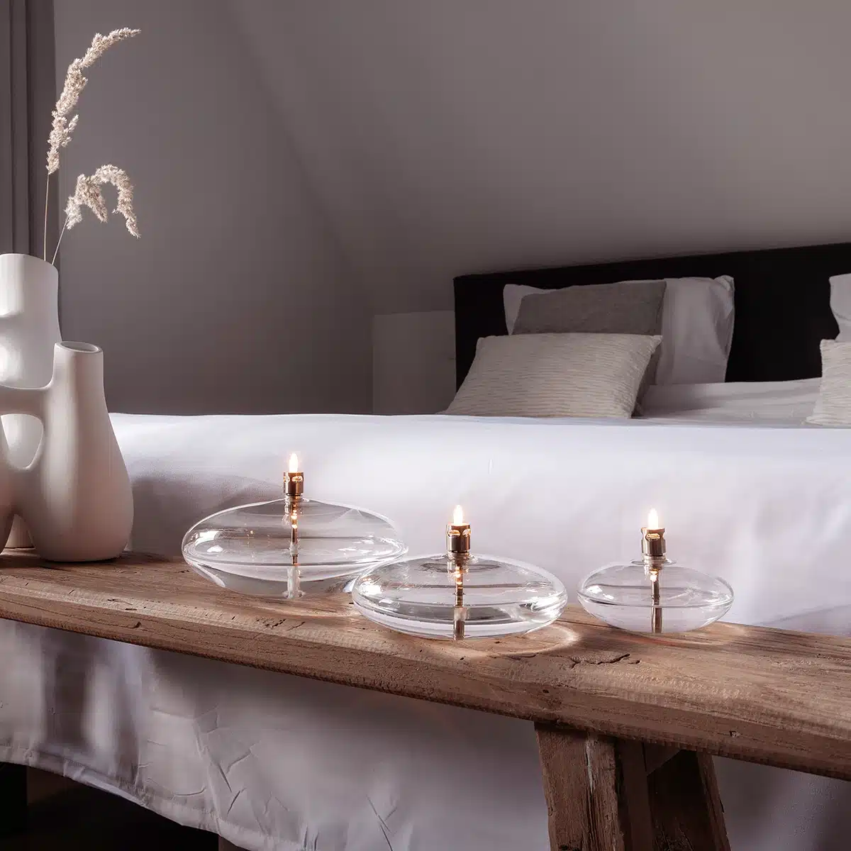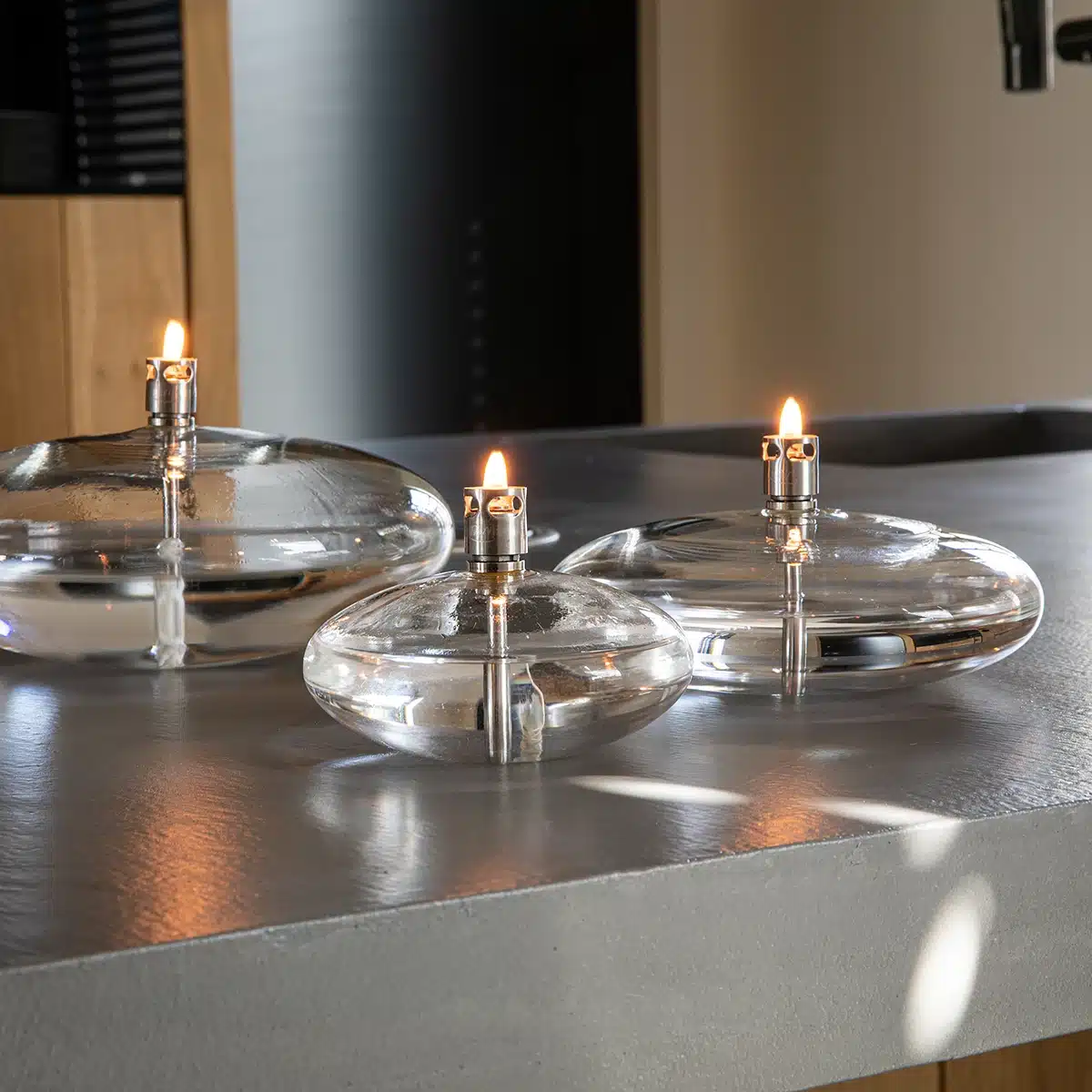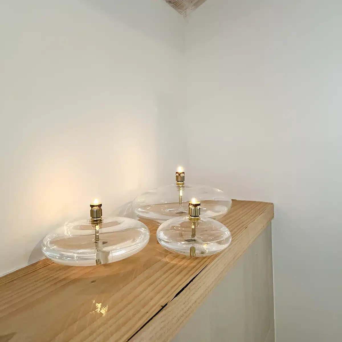 Lampe à huile galet verre et laiton est idéale pour créer une ambiance cosy et chaleureuse à votre intérieur. Cette lampe à huile est très simple d’utilisation. Il suffit de dévisser la partie supérieure, de placer l’entonnoir et verser la paraffine liquide. La mèche en fibre de verre vous suivra quelques années sans problème. Elle est quasiment inusable.
