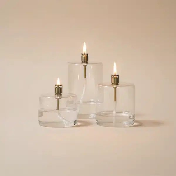 Lampe à huile verre et laiton cylindre est idéale pour créer une ambiance cosy et chaleureuse à votre intérieur. Cette lampe à huile verre et laiton est très simple d’utilisation. Il suffit de dévisser la partie supérieure, de placer l’entonnoir et verser la paraffine liquide. La mèche en fibre de verre vous suivra quelques années sans problème. Elle est donc quasiment inusable.
