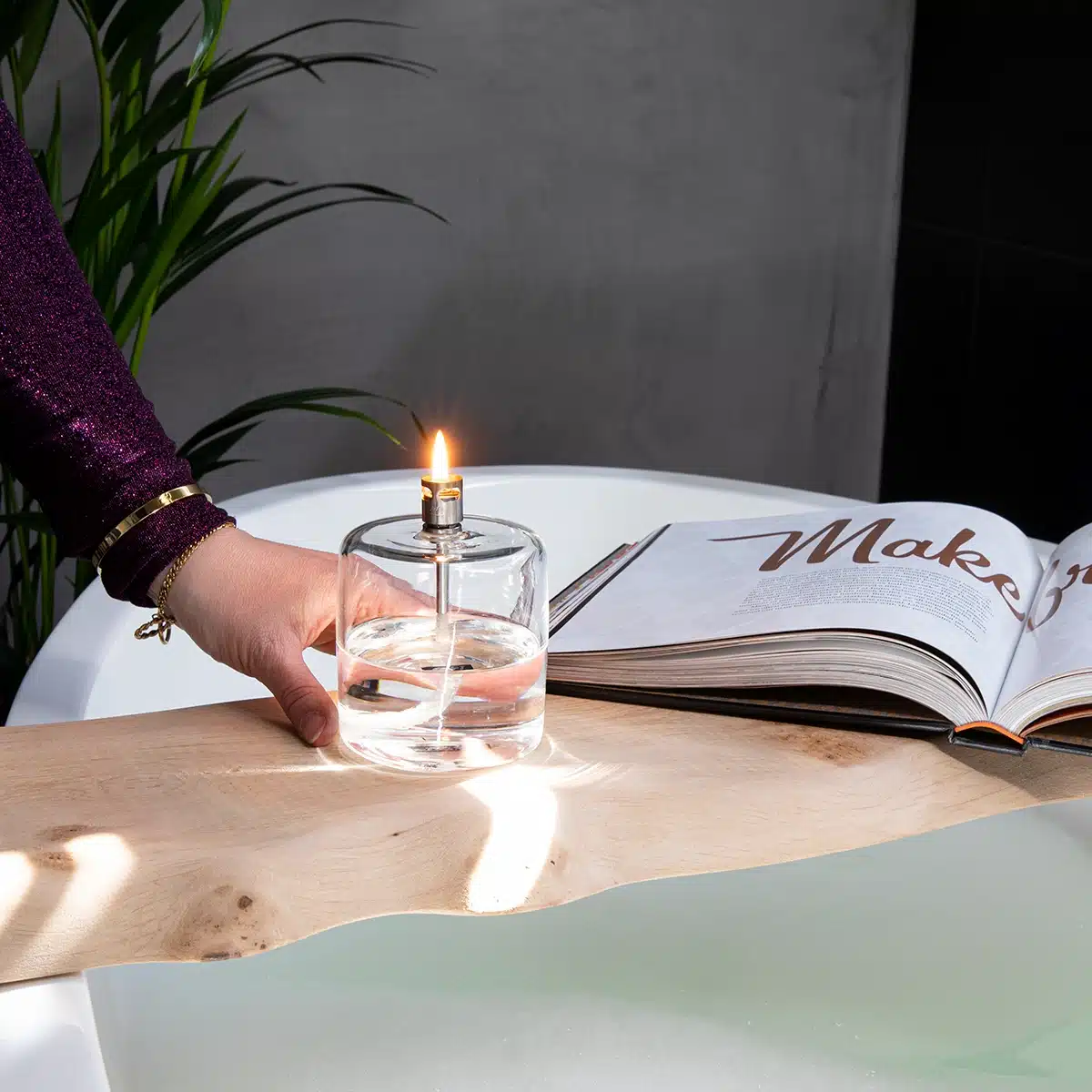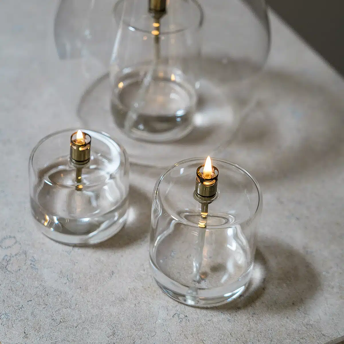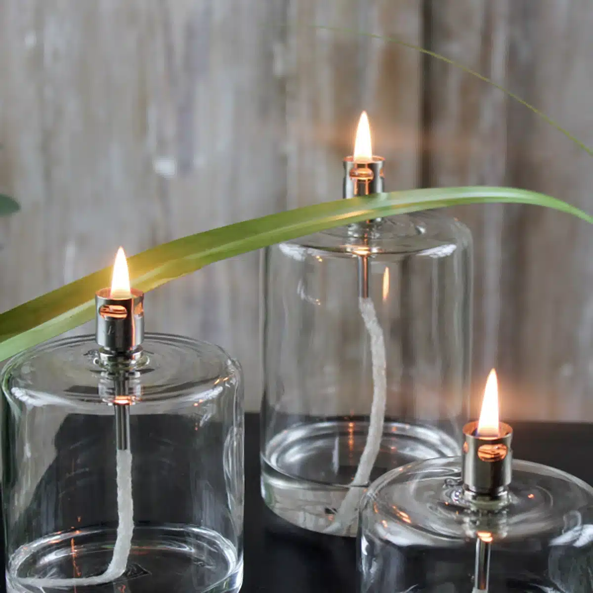 Lampe à huile verre et laiton cylindre est idéale pour créer une ambiance cosy et chaleureuse à votre intérieur. Cette lampe à huile verre et laiton est très simple d’utilisation. Il suffit de dévisser la partie supérieure, de placer l’entonnoir et verser la paraffine liquide. La mèche en fibre de verre vous suivra quelques années sans problème. Elle est donc quasiment inusable.